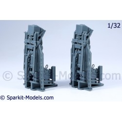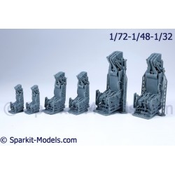 These parts accurately represent the Mk.F16F ejection seat used on the Rafales. Extensive research based on the dimensions and pictures of an actual seat and technical documentation were made. The seat has its upper harness in a raised position on top of the parachute container. These parts will advantageously replace plastic kit parts. It just needs painting for a convincing look.